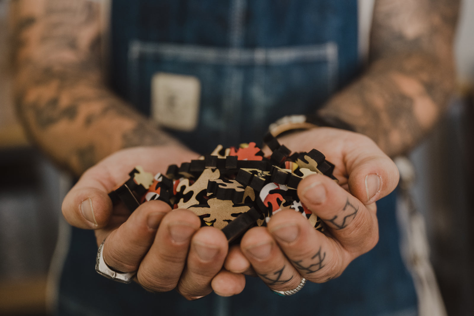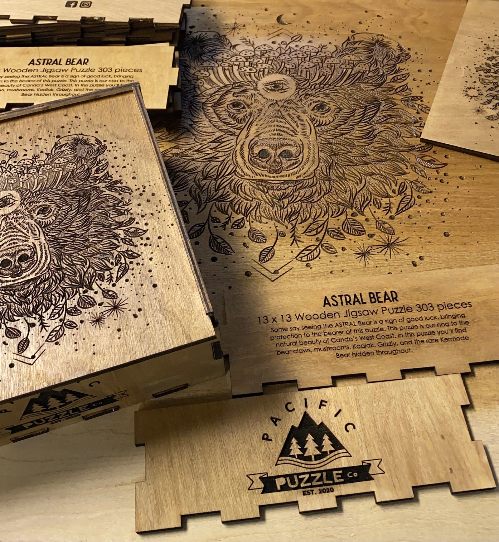 We are Aaron and Kat, from Salt Spring Island BC, founders and creatives behind Pacific Puzzle Co. We are also partners in crime and lovers of weird puzzles. We were inspired to create a puzzle company 4 years ago after a winter storm left us without power for six days in our island home. We started assembling puzzles by candlelight, but were most enchanted by a small wooden puzzle we had purchased years before. Soon after we made it our mission to figure out how to make these beautiful wooden puzzles more relevant to our personal style. Shortly after Pacific Puzzle co was born.